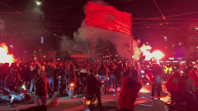 Amsterdam'da yaşayan Faslılar, milli takımlarının F Grubu'ndaki son maçında Kanada'yı 2-1 yendiği ve tarihinde ikinci kez son 16 turuna çıktığı maçın ardından araçlarıyla korna çalarak şehir içinde tur attı.