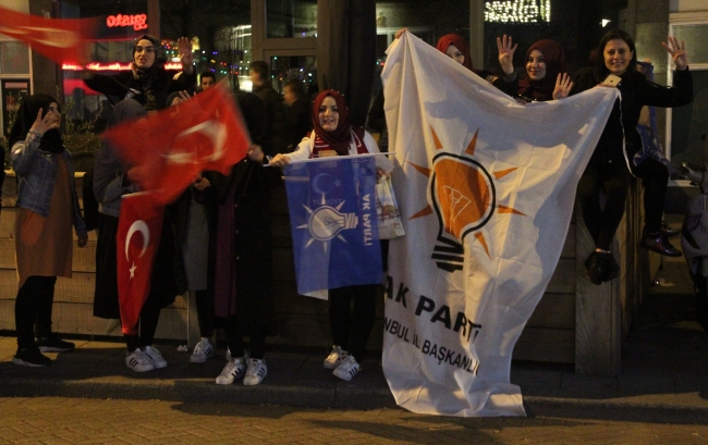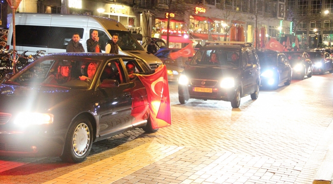 Hollanda’daki Türk vatandaşları, cumhurbaşkanlığı hükümet sistemi için yapılan halk oylamasında, resmi olmayan sonuçlara göre "evet" çıkmasının ardından kutlama yaptı.