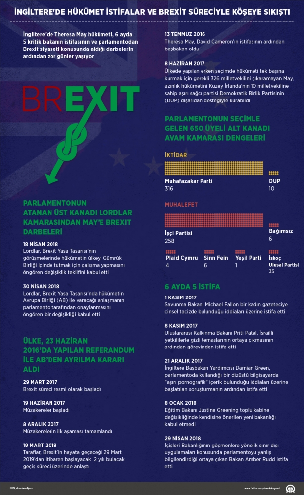 İngiltere'de Başbakan Theresa May, İngiliz halkının 2016'da Avrupa Birliği’nden (AB) ayrılma (Brexit) kararı aldığı referandumun ardından dönemin Başbakanı David Cameron’ın istifasıyla boşalan koltuğa büyük umutlarla oturdu.