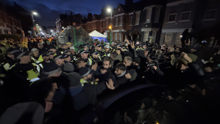 Haringey'deki toplum merkezi önünde bir araya gelen örgüt destekçileri ile bu noktada barikat kurmak isteyen polis arasında arbede çıktı.