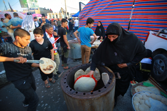 [Fotoğraf: AA]Yoğurduğu hamurdan göstericiler için her gün yüzlerce ekmek pişirdiğini dile getiren 64 yaşındaki Um Ali el-Vaili, "Hepimiz tek bir evin evlatlarıyız. Bizi vatanımız Irak bir arada tutuyor." dedi.