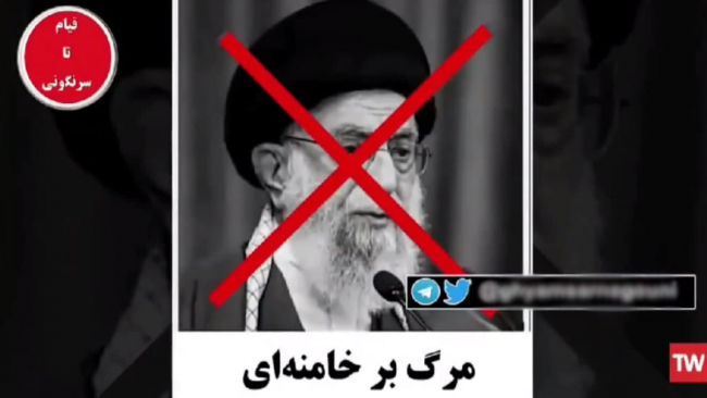 Bir kaç saniyeliğine ekranda kalan görüntüde "Recevi'ye selam" "Hamaney'e ölüm" şeklinde sloganlar yer aldı.