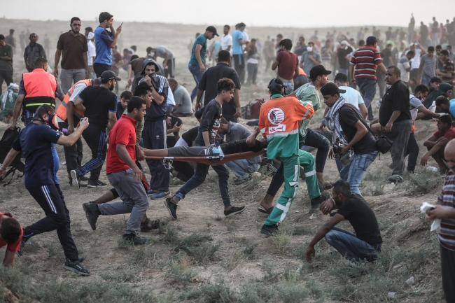 İsrail askerleri, "sürgün edildikleri topraklarına geri dönmeyi ve 2006'dan beri Gazze'ye uygulanan hukuksuz ablukanın kaldırılmasını" talep eden sivil halkın üzerine gerçek mermilerle ateş açıyor.