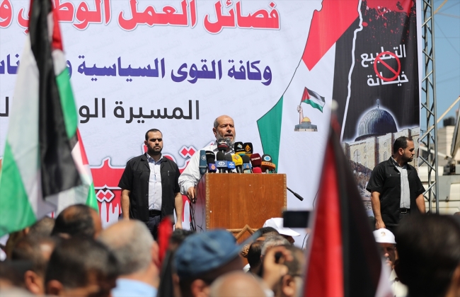 Hayye, gösteride yaptığı konuşmada, Filistin davasını tasfiye etmeye çalışan tüm projelerin karşısında öfkeyle durduklarını; Gazze ve Batı Şeria'daki tüm Filistinli grupların normalleşmeye karşı birleştiğini söyleyerek şunları kaydetti:
