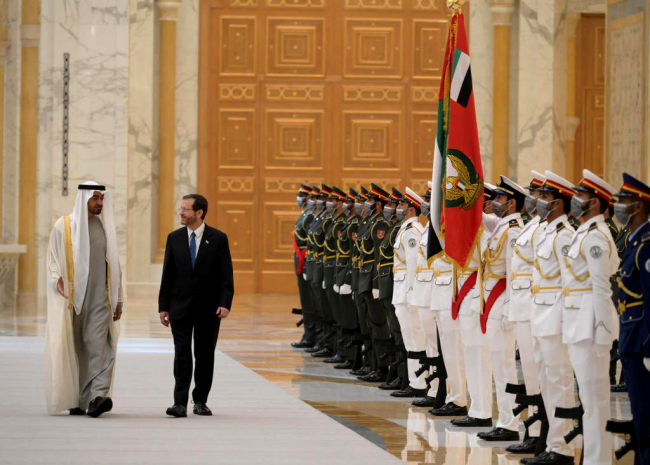 Bin Zayid'in daveti üzerine Abu Dabi'ye giden Herzog, BAE'yi ziyaret eden ilk İsrail Cumhurbaşkanı oldu.