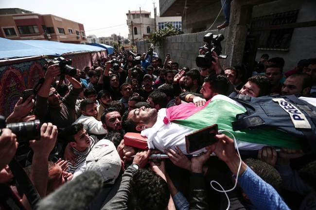 Büyük Dönüş Yürüyüşü'nü takip ettiği sırada 6 Nisan Cuma günü İsrail askerlerinin açtığı ateş sonucu yaralanan 30 yaşındaki Filistinli gazeteci Yasir Murteca şehit olmuştu.