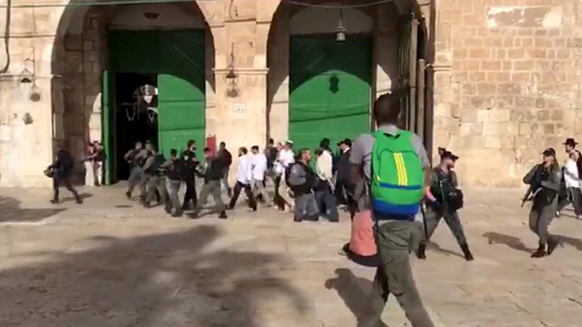 Aralarında aşırı sağcı eski milletvekili Haham Yehuda Glick'in de olduğu yüzlerce fanatik Yahudi, İsrail polisi eşliğinde Mescid-i Aksa’ya baskın düzenledi.