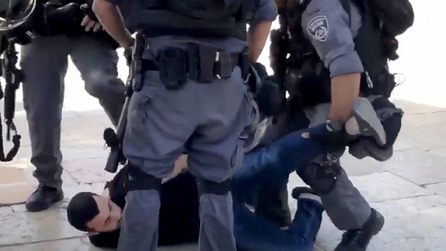 Görgü tanıklarından aldığı bilgiye göre, Yahudilere tekbir getirerek tepki gösteren cemaate ses bombası ve göz yaşartıcı gazla müdahalede bulunan İsrail polisi, çok sayıda Filistinliyi darbetti.