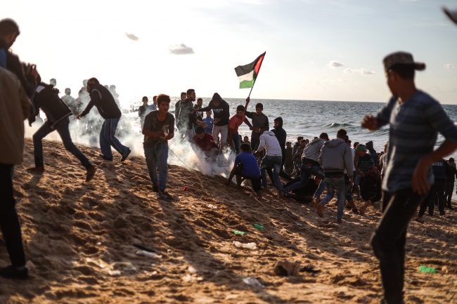 Filistinliler, Gazze ablukasının kaldırılması talebiyle düzenlenen deniz eylemi kapsamında 15'inci kez kuzey sahil sınırında toplanmıştı.