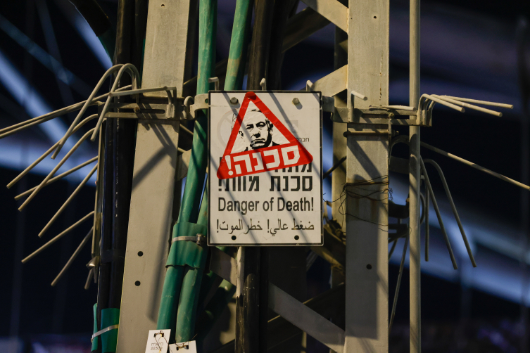 Ellerinde İsrail bayrakları bulunan protestocular, Başbakan Netanyahu ve hükümetindeki siyasetçiler aleyhinde pankart, afiş ve dövizler taşıdı.