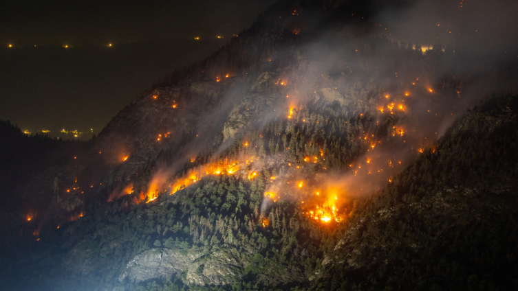 Valais'te dün akşam saatlerinde başlayan orman yangını, rüzgarın da etkisiyle daha fazla alana yayıldı.