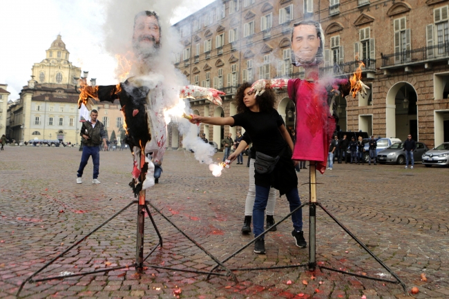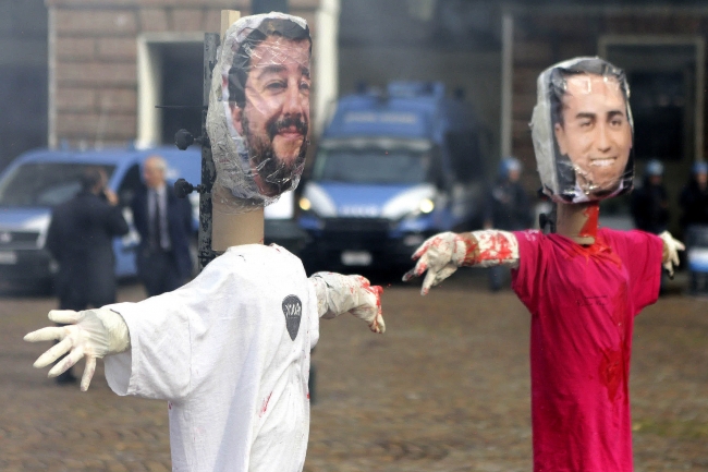 Protestocular Roma ve Torino sokaklarında İçişleri Bakanı Matteo Salvini ile Başbakan Yardımcısı ve Ekonomik Kalkınma, Çalışma ve Sosyal Politikalar Bakanı Luigi Di Maio Luigi Di Maio'nun sokak lambalarına astıkları fotoğraflarını yaktı.