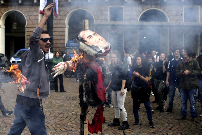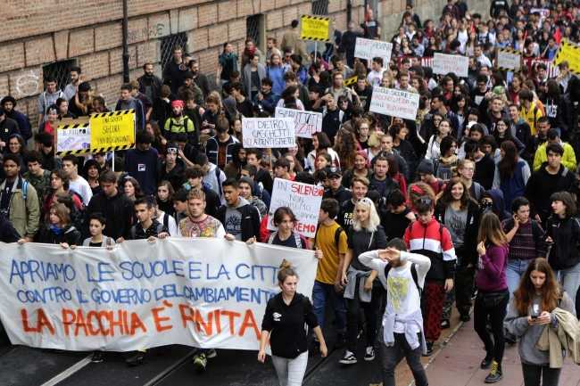 İtalya'da öğrenciler, ders kitaplarının ciddi güncellemelerden geçmemiş olmasını, ulaşım ve okul binalarına yönelik iyileştirmeler için gerekli kaynakların verilmemesini, okul güvenliği ve eğitim masrafları gibi ihtiyaçların görmezden gelinmesini protesto etti.