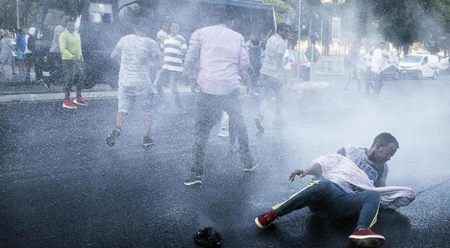 Göçmenler, polis müdahalesine "Biz terörist değiliz, sığınmacıyız" diyerek tepki gösterdi.