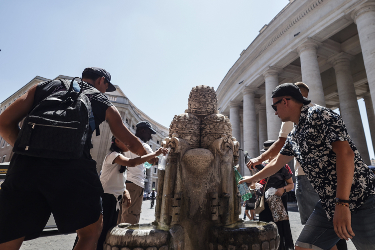 Yüksek hava sıcaklıkları dolayısıyla başkent Roma'da da serinlemek ve su almak isteyenler çeşmeler önünde uzun kuyruklar oluşturdu.