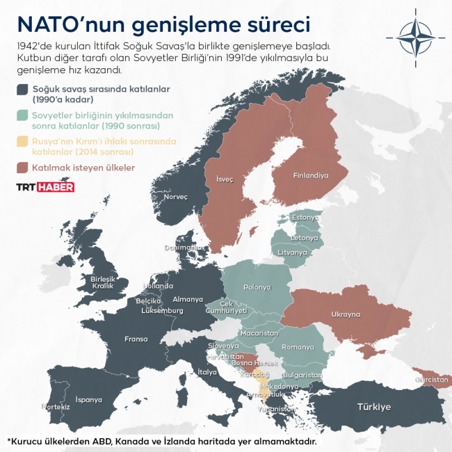 Rusya'nın Ukrayna'yı işgalinin ardından Finlandiya ve İsveç resmen NATO'ya üyelik başvurusu yaptı. İki ülke, Rusya'nın Ukrayna'yı işgali sonrası ittifaka katılma kararı aldı.