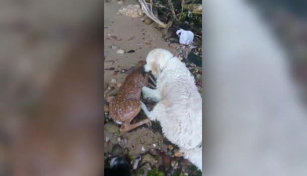 Kahraman köpek ceylanı sudan böyle kurtardı