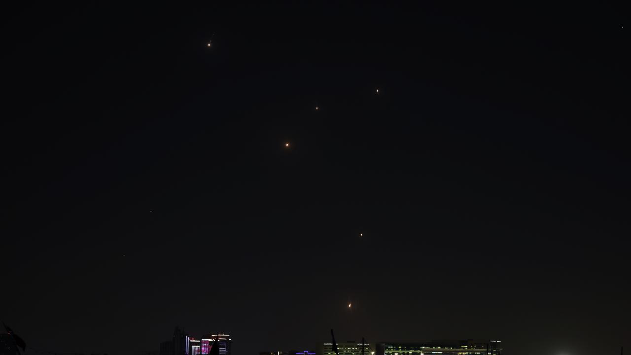 Füze saldırılarına müdahale edilmesi sonucu şiddetli patlamaların meydana geldiği aktarıldı.