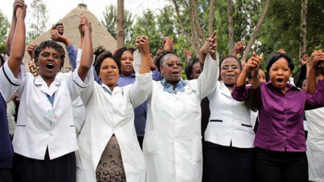 Başkent Nairobi`de protesto yürüyüşü düzenleyen sağlık çalışanları, hükümetle 2013 te yapılan toplu iş sözleşmesi gereği maaşlarına zam yapılmasını ve sağlık sektöründe iyileştirmeye gidilmesini talep etti.