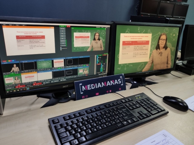Ulusal kanallardan ülke genelinde bugün yayınlanmaya başlanan e-derslerin çekimlerinin büyük bir bölümü, Kırgızistan-Türkiye Manas Üniversitesi Medya Merkezi MEDIAMANAS (Radyo Televizyon Müdürlüğü) tarafından gerçekleştirildi.