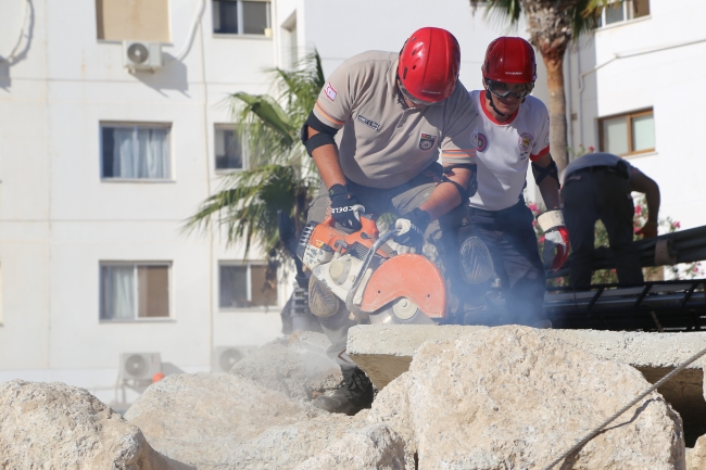 Konuşmaların ardından Sivil Savunma Gazimağusa Bölge Müdürü Kamil Ağcabay'ın anlatımı eşliğinde tatbikat gerçekleştirildi.