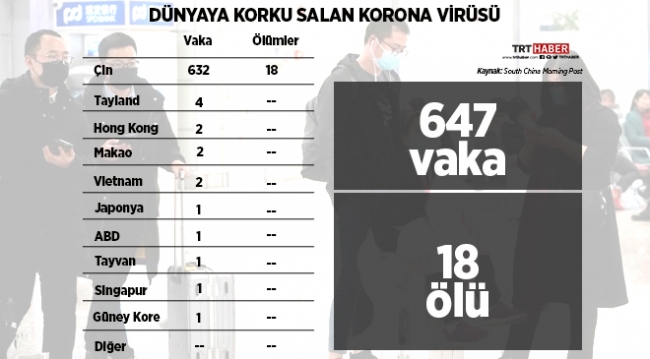 Çin'in Vuhan kentinde ortaya çıkan virüse şimdiye kadar Hong Kong ve Makao Özel İdari bölgelerinin yanı sıra ABD, Japonya, Güney Kore, Tayland, Suudi Arabistan, Singapur ve Vietnam'da rastlandı.