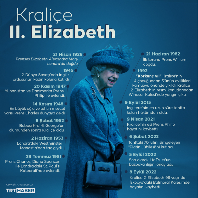 Kraliyet ailesinin Twitter hesabından yapılan açıklamada, Kraliçe Elizabeth'in, İskoçya'daki Balmoral Kalesi'nde hayatını kaybettiği duyuruldu.