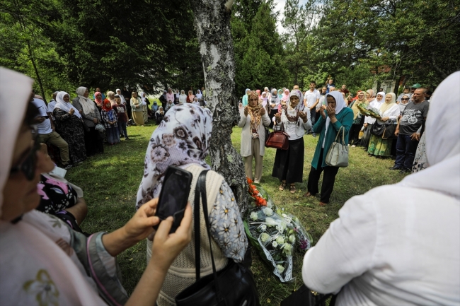 En genci öldürüldüğünde 16, en yaşlısı ise 36 yaşında olan Boşnak kurbanların yakınları, katliamın yapıldığı yere çiçek bırakarak dua etti.