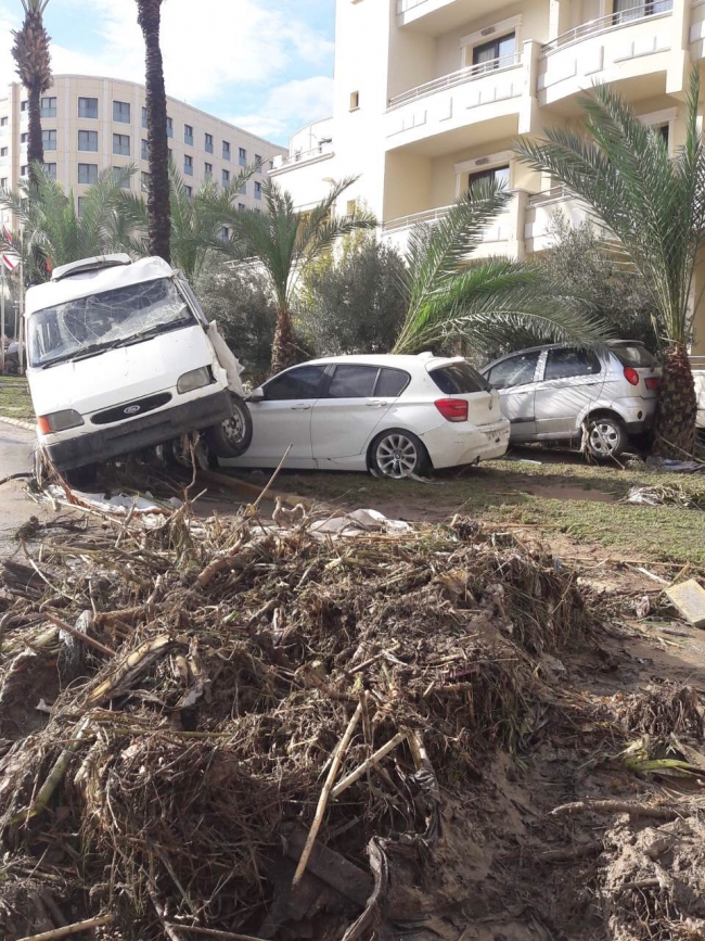 Kayıp kişiler için arama kurtarma çalışmaları devam ederken Girne'de otelde mahsur kalan turistler de itfaiye aracıyla kurtarıldı.