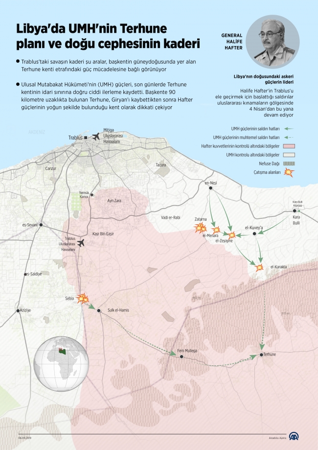 Misratalı tugayların Terhune'ye saldırmasına mukabil Hafter'in Trablus ile Misrata arasındaki sahil yolunu kesme hedefi ise ilerleyen günlerde batı cephesinde suların ısınacağına işaret ediyor.