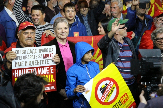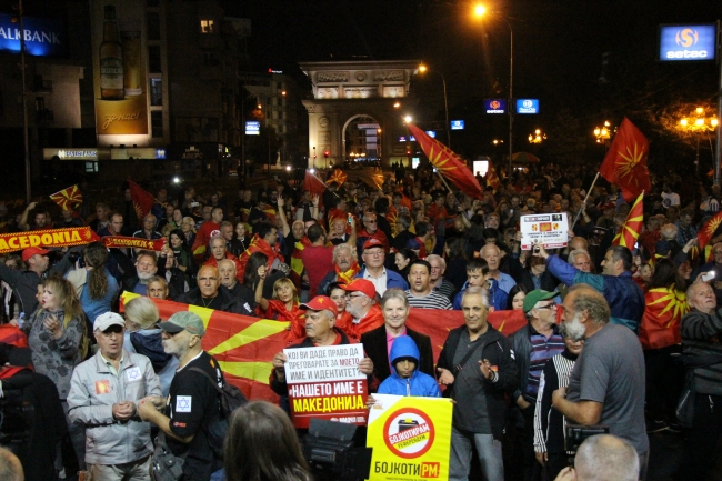 Makedonya'nın adının değiştirilmesini öngören anlaşmanın kabulüne ilişkin referanduma karşı olduklarını göstermek için toplandıklarını kaydeden Petrov, Devlet Seçim Komisyonunun açıkladığı sonuçları kabul etmediklerini söyledi.