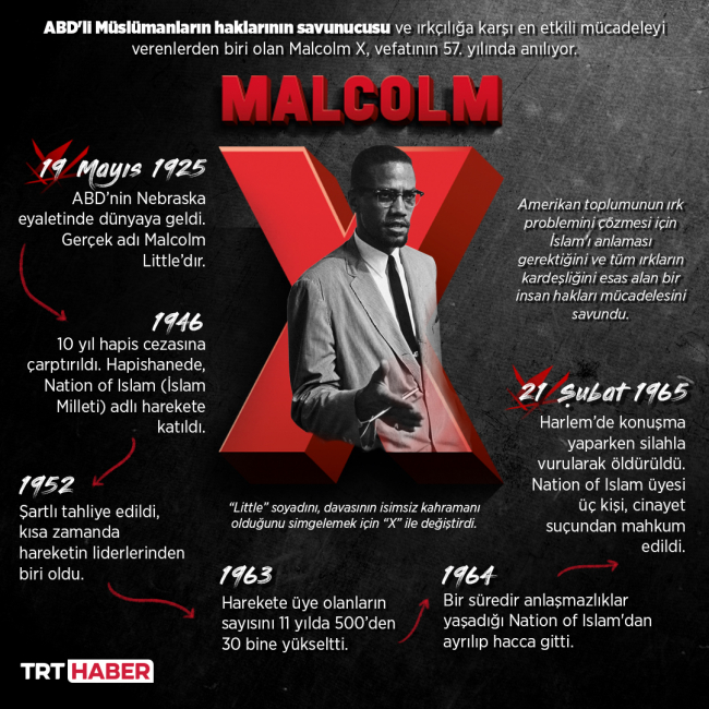 [Fotoğraf: AA]Hastaneye kaldırılan Malcolm X kurtarılamayarak 39 yaşında hayata gözlerini yumdu.