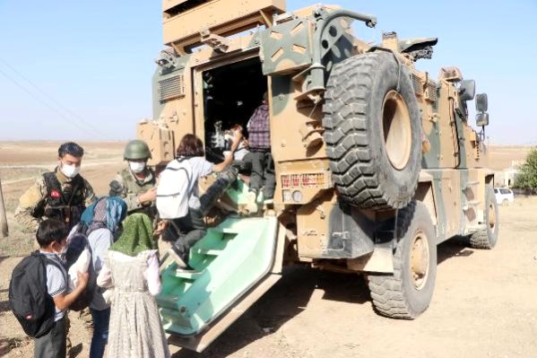 Resulayn'ın kırsal bölgesinde yaşayan ve Mirekiş köyündeki okulda eğitim gören öğrenciler, okullarına zırhlı araçlarla taşınıyor.