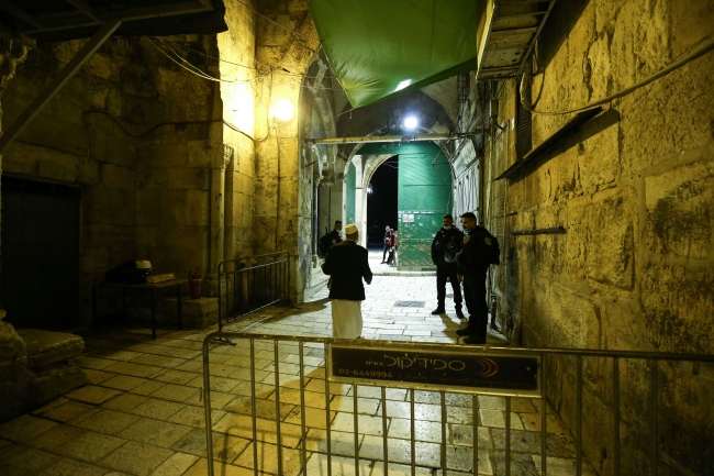 [Fotoğraf: AA ]Kudüs'te İslami Vakıflar Dairesi, Aksa'nın sabah namazından itibaren ibadete açılacağını Mescidi Aksa'nın minarelerinden duyurmuştu.