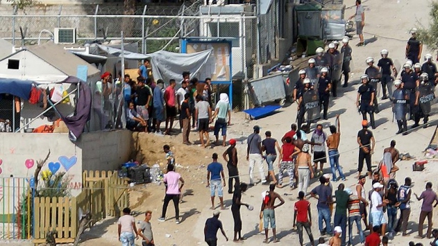 Alınan bilgiye göre, adadaki göçmen kampında henüz belirlenemeyen bir nedenle patlama olduktan sonra yangın çıktı.