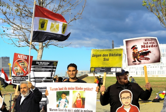 Mısır Cumhurbaşkanı Abdulfettah es-Sisi, Berlin'de bir grup tarafından protesto edildi.