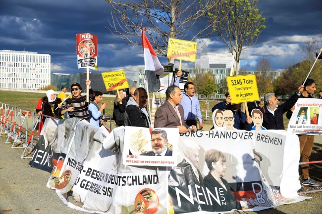 Demokrasi için Alman-Mısır Derneği (DAUD) tarafından, Sisi’nin Almanya Başbakanı Angela Merkel ile yaptığı görüşme sırasında Başbakanlık binası önünde protesto gösterisi düzenledi.