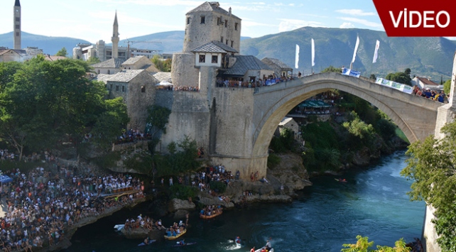 Bosna Hersek'teki Osmanlı yadigarı tarihi Mostar Köprüsü, heyecan dolu bir etkinliğe sahne oldu. Dünya Uçurum Dalışı yarışlarının Bosna Hersek ayağında yarışmacılar akrobatik hareketlerle tam bir görsel şölen ortaya koydu.