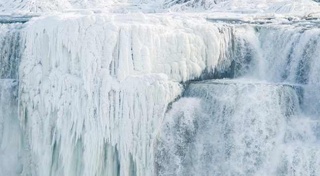 Her yıl kış aylarında büyük bölümü donan Niagara Şelaleri'nde, bu yıl da adeta suyla buzun dansı yaşanıyor.
