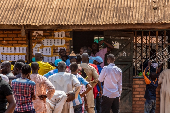 [Seçmenler, oylarını kullanmak için başkent Bangui'deki Koudoukou İlkokulu önünde kuyrukta bekledi. | Fotoğraf: AA]"Yüzde 76,31'lik katılım oranı gerçeği yansıtmıyor"
