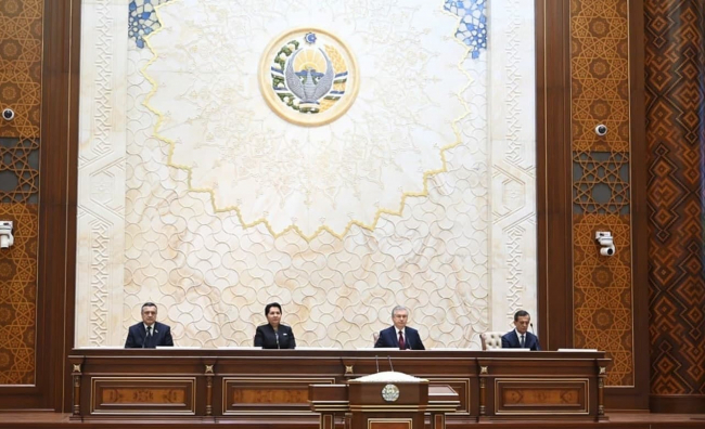 Özbekistan'da geçen ay düzenlenen cumhurbaşkanı seçimini kazanan Mirziyoyev için Özbekistan Parlamentosu'nun alt kanadı Yasama Meclisi ve üst kanadı Senato'nun düzenlediği ortak Genel Kurul toplantısında tören düzenlendi.