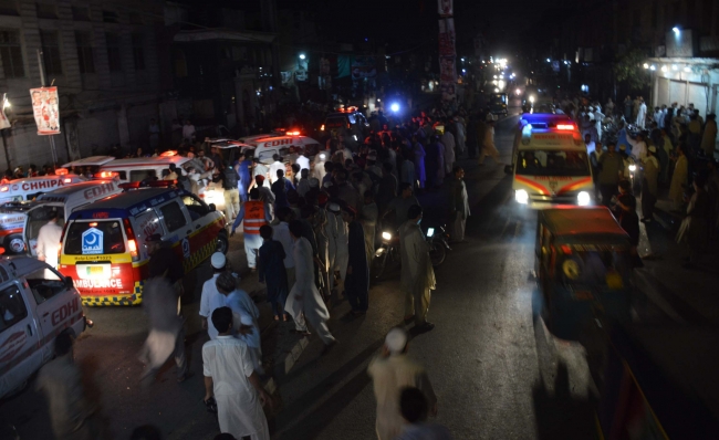 Pakistan'da, Avami Ulusal Partisi'nin (ANP) mitingi sırasında bir saldırgan üzerindeki bombayı infilak ettirdi.