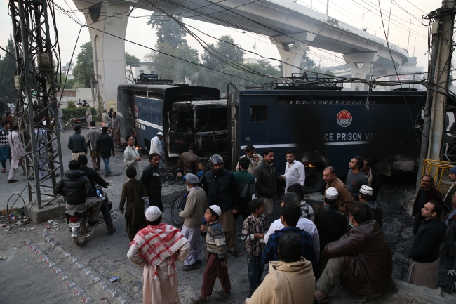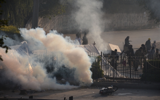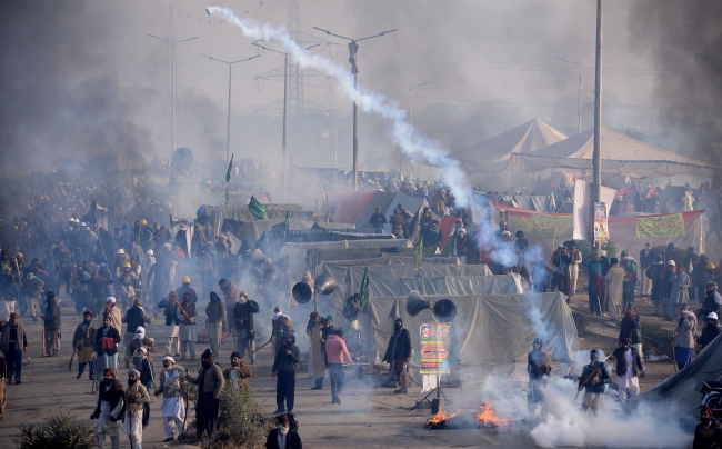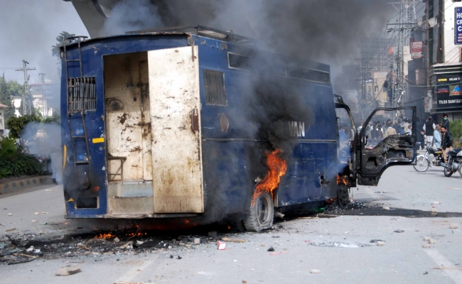 Pakistan Yüksek Mahkemesinin eylemcilerin dağıtılmasına dair kararının ardından başlayan müdahalede, öfkeli kalabalığın 4 polis minibüsünü ateşe verdiği, güvenlik güçleri ve gazetecilere taş ve sopalarla saldırdığı bildirildi.