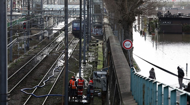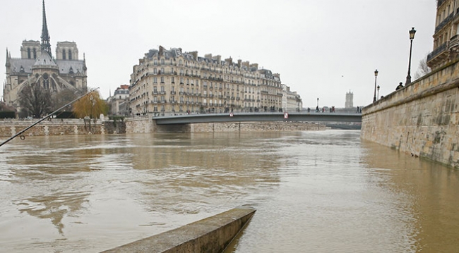 Fransa'nın başkenti Paris'te aşırı yağış nedeniyle taşan Seine Nehri yolları su altında bıraktı. Bu durum şehir hayatını da olumsuz etkiledi. Bazı tren seferleri iptal edilirken, nehir kenarındaki yollar kapandı, araç trafiği durdu.