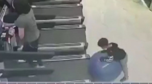 Çin’de bir spor salonundaki kazada küçük bir çocuk, oynadığı pilates topunun sıkışması sonucu kolunu koşu bandına kaptırdı.