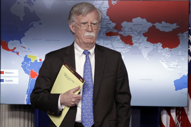 Trump'ın Bolton rahatsızlığının bir diğer adresi ise Venezuela. Bir toplantının ardında elinde tuttuğu defterde, Venezuela'ya askeri müdahale çağrışımı yapan notlar yazılı olan Bolton, ABD'nin Maduro'ya karşı başlattığı mücadelenin kaybedilmesinin faturasını da üstlendi.