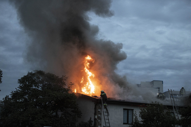 [Fotoğraf: AA]İtfaiye ekiplerinin müdahalesiyle yangınlar söndürüldü. Saldırılar nedeniyle Harkiv merkezinde akşam saatlerinde sık sık sirenler çaldı.