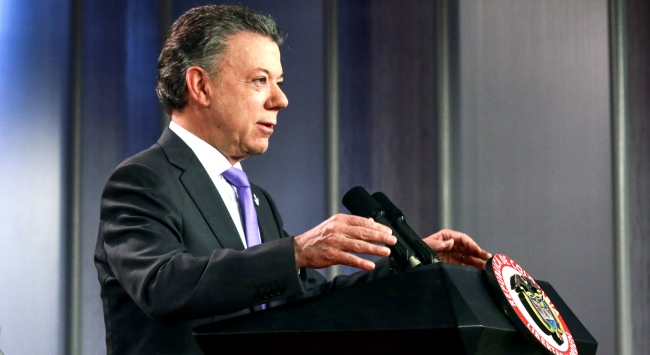 Norveç Nobel Komitesi tarafından bu yılki Nobel Barış Ödülü'ne layık görülen Santos, ülkenin batısındaki Bojaya kasabasını ziyareti sırasında yaptığı konuşmada, hükümet ile Kolombiya Devrimci Silahlı Güçleri (FARC) arasında varılan anlaşmanın geçen haftaki referandumda reddedilmesine karşın barışın sağlanması için çaba harcamaktan vazgeçmeyeceğini söyledi.