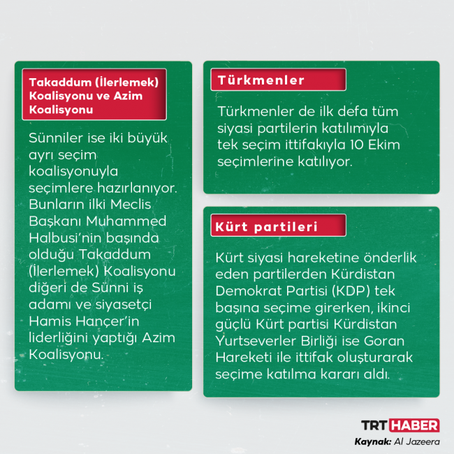 Irak'ta 10 Ekim Pazar günü erken genel seçimler yapılacak. Ülkede 2018 yılında yapılan seçimlerde Kerkük ve diğer bölgelerde şaibe ve usulsüzlükler yapılmıştı