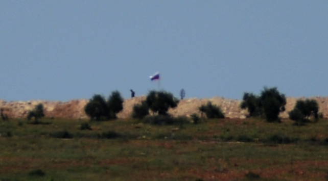 Kilis'in karşı tarafında terör örgütü PYD'nin kontrolündeki bölgeye çekilen ve silahlı kişiler tarafından korunan Rus ve Suriye bayraklarının sayısı arttırıldı.